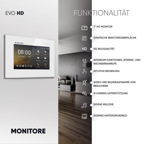 HD Video Türsprechanlage mit Fingerprint und RFID für 1 Familienhaus, 2x Monitore, Balter EVO HD Fingerprint