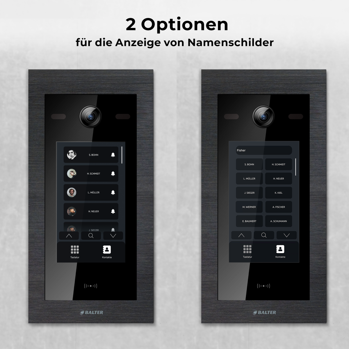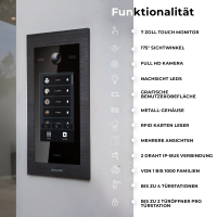 HD Video Türsprechanlage mit Touchscreen und RFID für 1 Familienhaus, 3x Monitore, Balter EVO HD Touch Schwarz